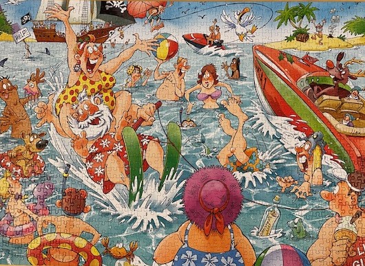 Oleme pühadelainel, nagu võib näha ka kokku pandud uuelt puslelt. Puslepildilt on näha Jõuluvana, kes lustib pühade ajal rannas koos proua Jõuluvana ja päkapikkudega. „Wasgij?“ originaalpuslede puhul on eriline see, et tuleb lahendada mõistatust ühe tegelase vaatenurgast, mitte karbil oleva pildi järgi. Algus oli segadusse ajav, kuid protsess põnev ja täis üllatusi.